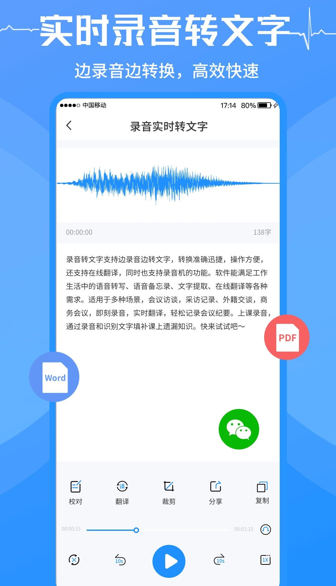 2、高效便捷:支持快速录制到文本转换,快速识别,无延迟,允许用户立即查看和编辑转换后的文本。