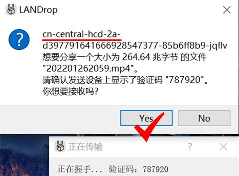 3、之后我们的电脑上就会出现一个弹窗,点击“Yes”,它就会自动进行传输。