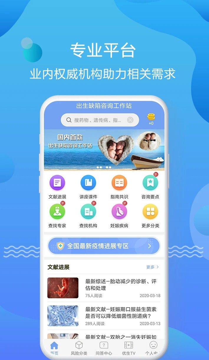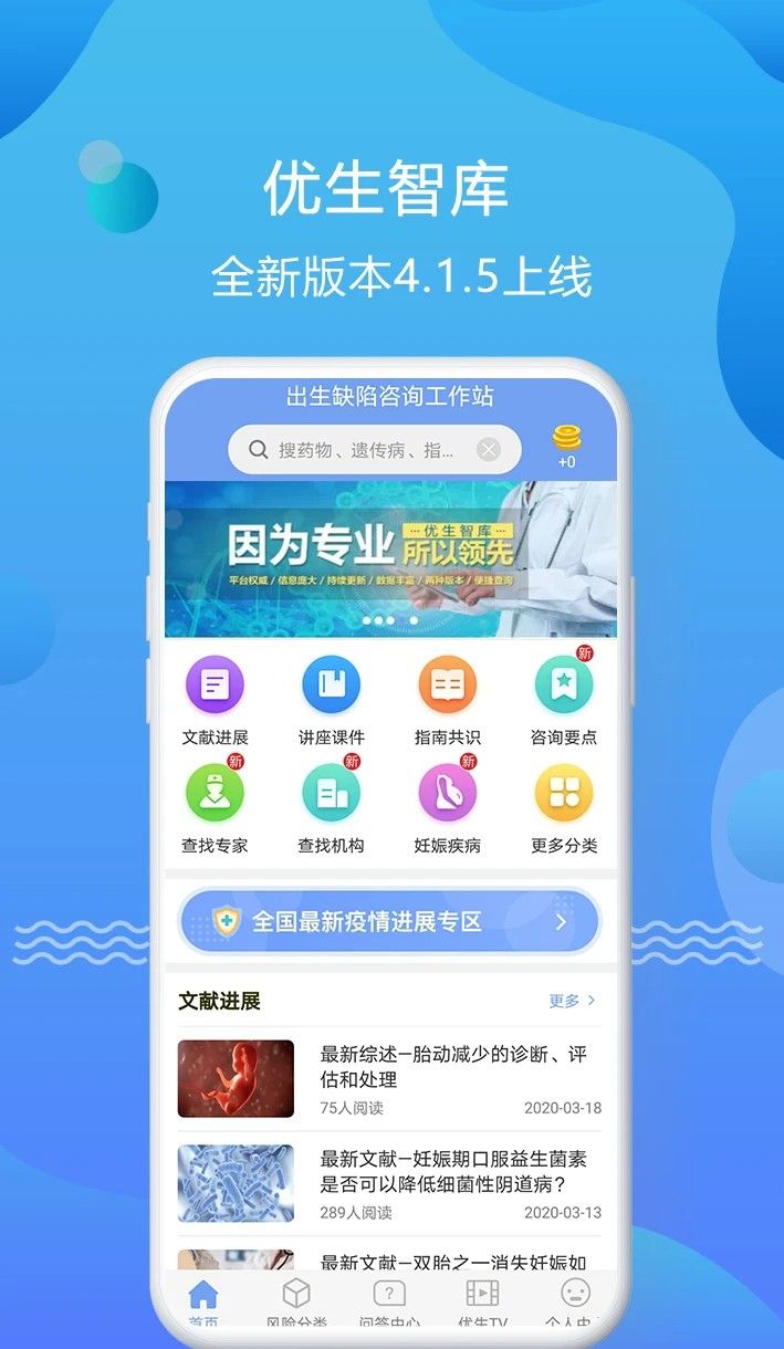 优生智库是一款热门的医生问诊软件,可以轻松为孕妇、专家等提供各种科普文章和专业知识,还能及时推送重要文章信息,包括国内外研究的最新进展,以便用户及时了解最新消息,能完全满足所有使用需求,还提供各种讲座材料、在线课程等,用户可以自由进入首页中浏览关注,轻松获取各种新闻信息和动态,还能通过参加在线讲座,可以与专家直接对话,并让各种专家教您专业知识,有需要的用户欢迎来本站下载软件。