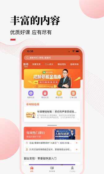 2、多样化的学习形式:支持短视频详解、现场互动、学习音频伴奏、图形栏目等多种载体,满足不同场景的学习需求。