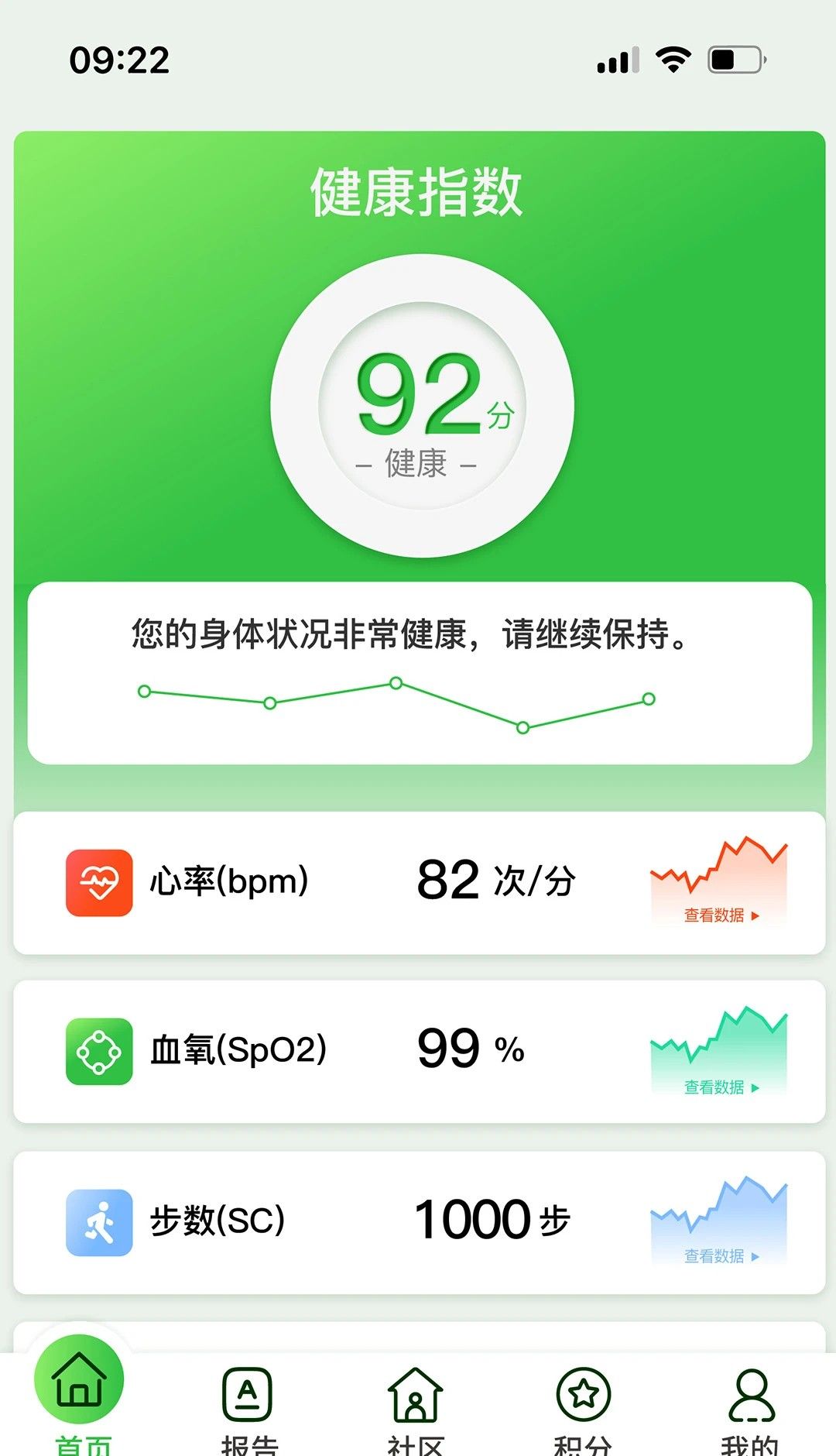 2、健康数据仪表板:整合智能设备监测的血压、心率、血氧等数据,生成可视化趋势图,供儿童远程查看。