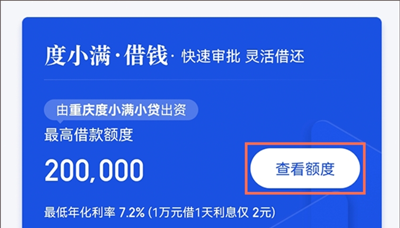 2、额度申请:通过点击[度小满 APP ]-[ 查看额度 ]