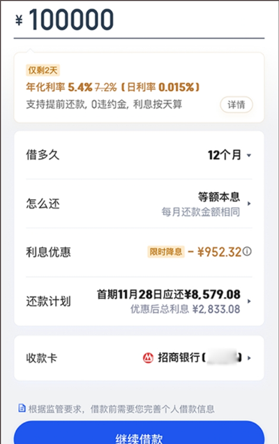 2、利息和费用透明度:年利率从7、2%开始,借款10000元的日利率从2元开始,年利率范围为7、2%-24%;