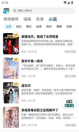 3、软件除了精美好看的漫画之外,还有很多不错的小说资源。