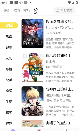 2、界面简洁易用:UI设计清新直观,分类清晰。新用户可以在3秒内开始,轻松找到他们最喜欢的漫画。