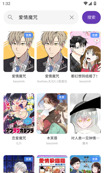 2、有想看的漫画可以直接在软件上方输入漫画名称,点击搜索即可跳出。