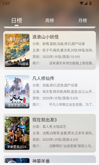3、专题列表聚合:每日更新所选列表,如“热门节目列表”、“高分列表”和“新上线列表”,帮助您发现高质量的电视剧。