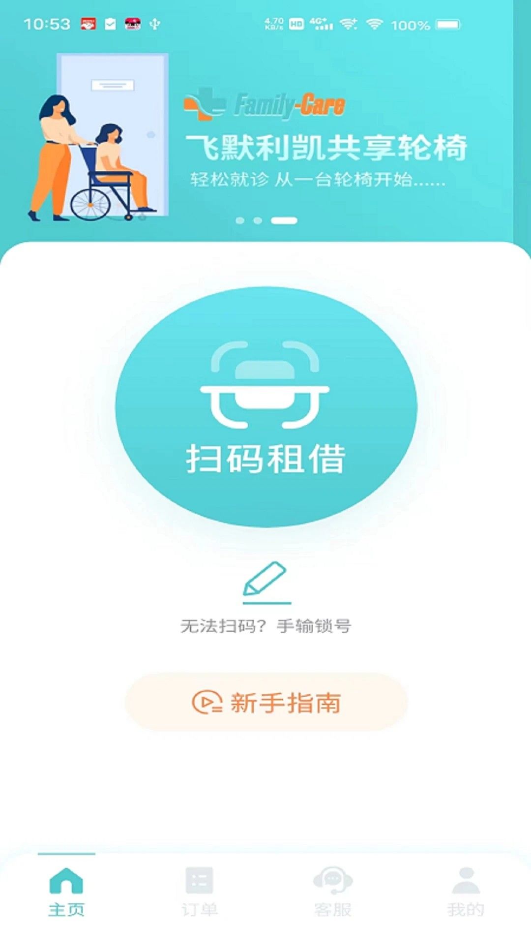 1、点击租赁界面,扫描各类伴床二维码,提交个人租赁信息。