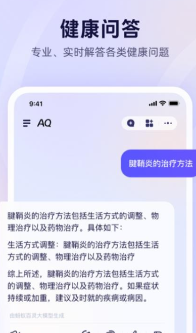 3、高度专业的健康问答模式,让您随时在线发起咨询,快速获取健康计划。