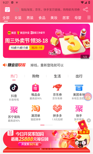 赚金街app是一个非常高品质的省钱购物软件。这个软件的特点是丰富多样的优质产品和大量的优惠券资源。用户在手机上安装该软件后,可以随时在软件上搜索自己需要的产品及相关优惠券,领取优惠券并下订单,轻松实现省钱购物,非常方便。不仅如此,它还为用户提供了一个赚钱的好方法。用户只需点击一下,就可以与家人和朋友分享软件中的各种高质量产品。