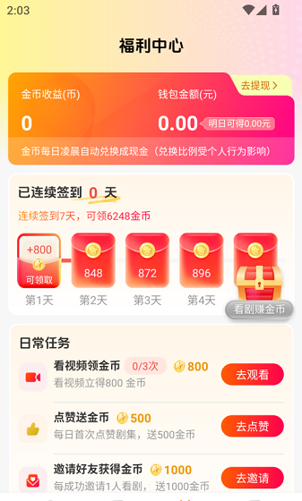4、软件看剧都是有奖励的哦!做任务获取更多奖励和福利。