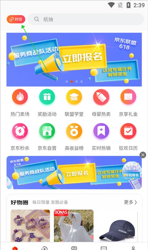3、接着我们打开京粉app,点击左上角的【转链】。