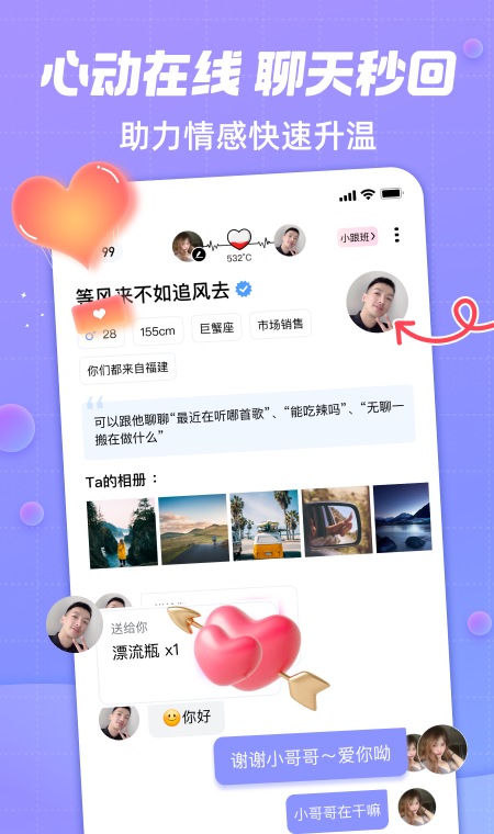 4、安全合规运营:严格遵守网络社交平台规范,配备24小时人工审核与举报处理机制,守护健康社交生态。