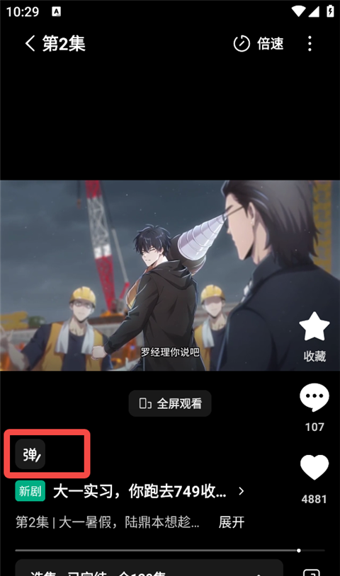 3、返回播放界面,点击【弹】进行发送弹幕。