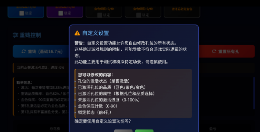 4、自定义设置支持“极限属性流”与“性价比流”两种策略,满足不同玩家需求。