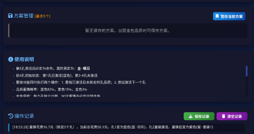 3、以四孔武器为例,前两孔金色激活时,计算器能精准计算后两孔的洗练成本,避免因保底机制重复投入。
