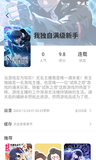 2、进入后可从作品库中自由挑选一部漫画,本次操作以《我独自满级新手》作为示例。
