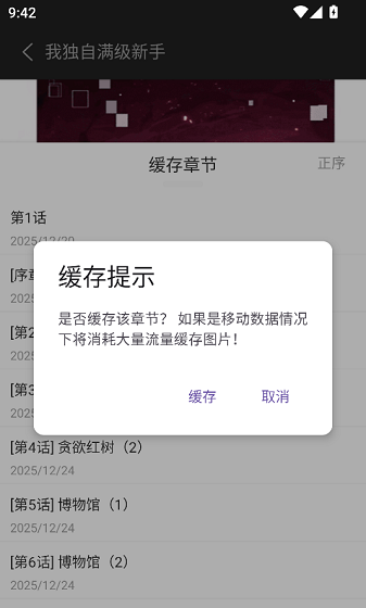 4、接下来,依据您的需要选定要缓存的对应章节,此时系统将弹出确认面板,点击面板中的【缓存】键即可。