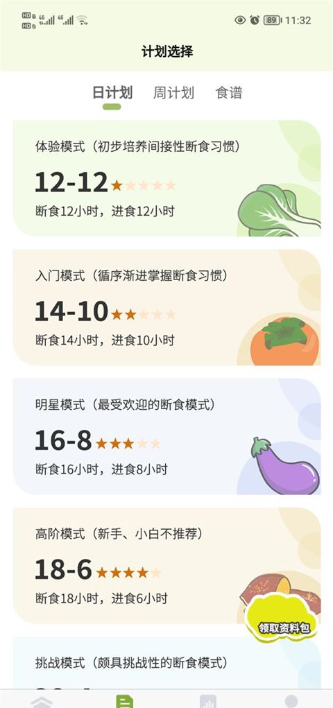3、在主页上,点击选择你的禁食计划。