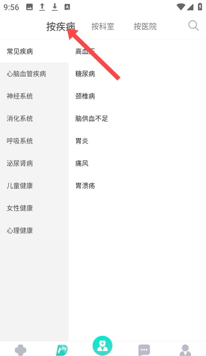 3、疾病查询页面分类很好。左侧列出常见病、心脑血管疾病等,右侧则对应高血压、糖尿病等病症,方便用户快速查询疾病,获取专业的医疗咨询和健康知识。