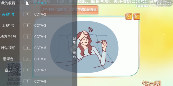 2、来到首页点击屏幕任意位置可以看到很多的电视频道。