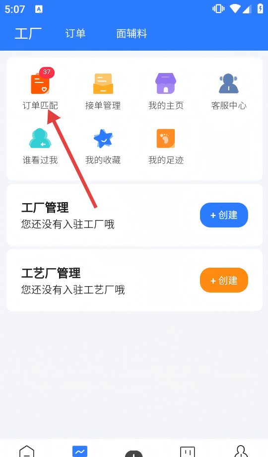 2、进入工作台页面后,找到并单击[订单匹配]图标,进入订单匹配列表页面。