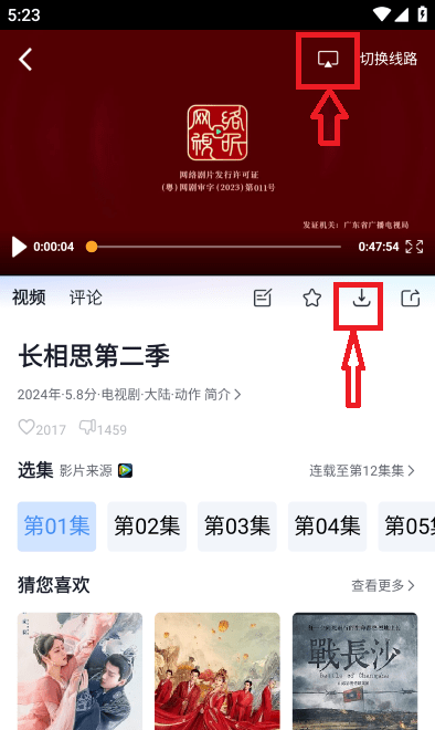 3、如果遇到卡顿可以切换路线,剧集也能在这里选择。
