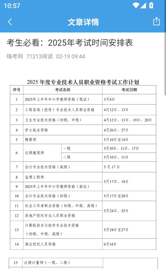 嗨考网app如何阅读热门考试资讯的文章详情内容?
