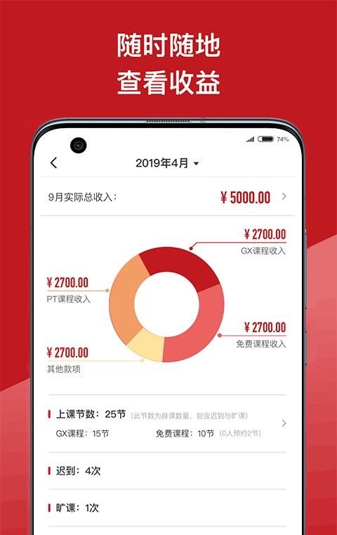 4、教练还可以在收入查询中查看自己的收入情况,了解哪些课程最受欢迎,并相应地调整教学策略。