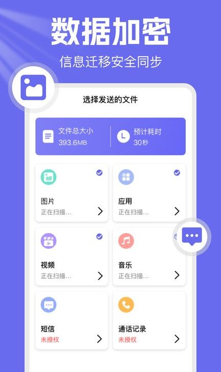 手机克隆换机王是一款非常实用的换机互传软件,拥有个性化的界面设计,可以帮助用户安全快速地将所有联系人、聊天记录、照片、视频、软件和重要数据从旧移动设备传输到新手机,轻松享受流畅的手机使用过程,还提供丰富的功能选项,无需任何权限即可上手使用,随时随地在线备份手机数据来保护隐私安全,能完全满足所有使用需求,还具有极速传输服务,允许用户轻松传输各种手机数据文件,有兴趣的用户欢迎来本站下载软件。