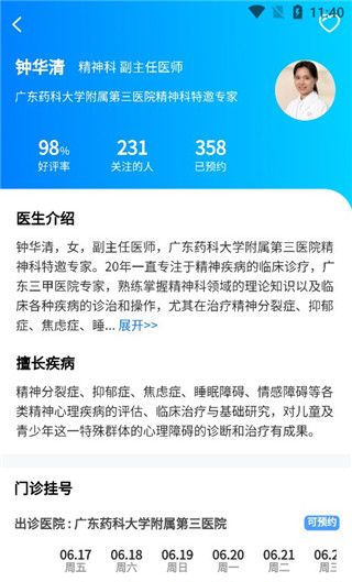 4、最终,您可以通过一系列排除项找到所需的医生信息。您可以在此处查看医生的介绍和患者的信息。