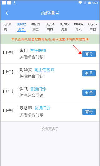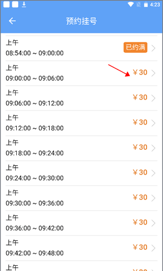 4、首先,您需要确认是否有可用的注册。红色表示已满,蓝色表示有可用的注册。选择要注册的日期和时间,然后单击其中一位医生进行注册。
