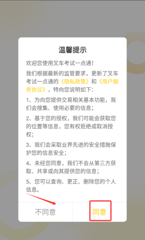 1、点击确认协议,打开应用程序,进入叉车准备专属学习界面。