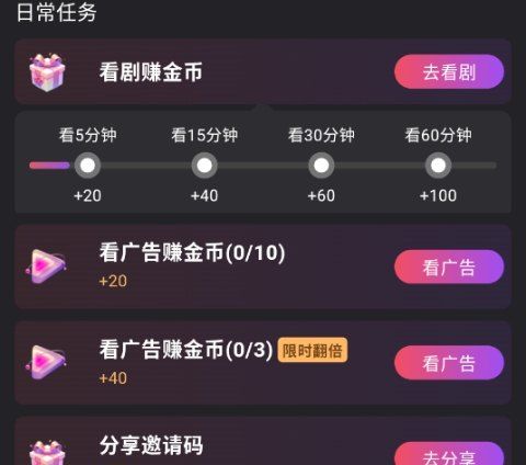 4、日常任务:每天0:00刷新任务进度和奖励。