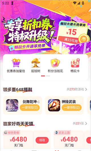 4、同时平台还有摇钱树、多重648福利、优惠券加量包等各种优惠加持。