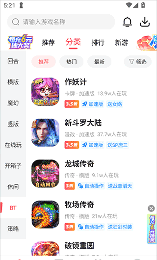3、还有各种BT手游也以折扣福利让玩家畅玩。