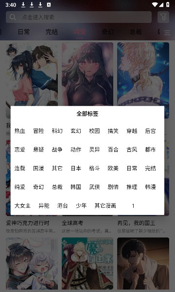 2、点击左上角放大镜也可以自定义搜索漫画。