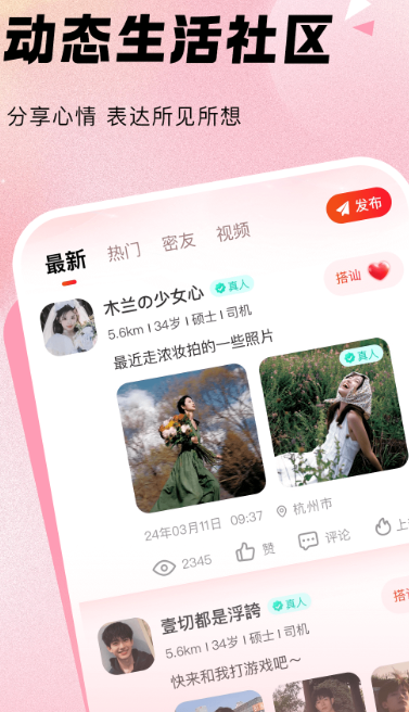 1、支持在线编辑和分享动态,帮助更快地找到你喜欢的人。