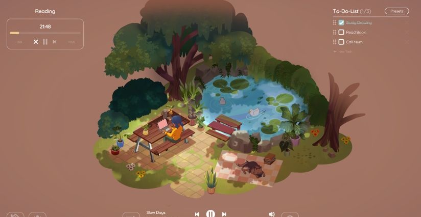 在这嘈杂的世界里,Virtual Cottage 2是独属于您的一片宁静空间。 启动这款游戏,输入你想要完成的任务,一边聆听舒缓的节拍和环境音效,一边进入专注的状态。