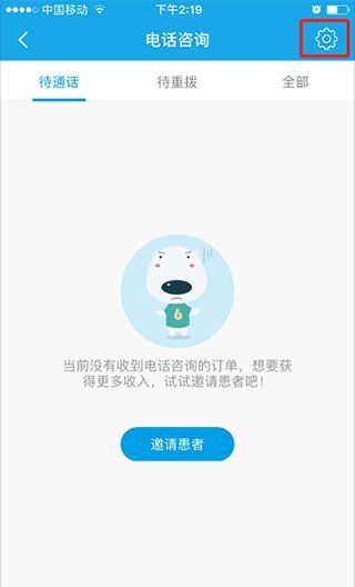 2、点击右上角的小齿轮,进入“电话咨询”设置页面。