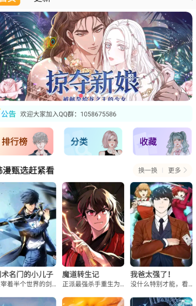 1、直接打开软件就可以在首页可以看到各种漫画资源。