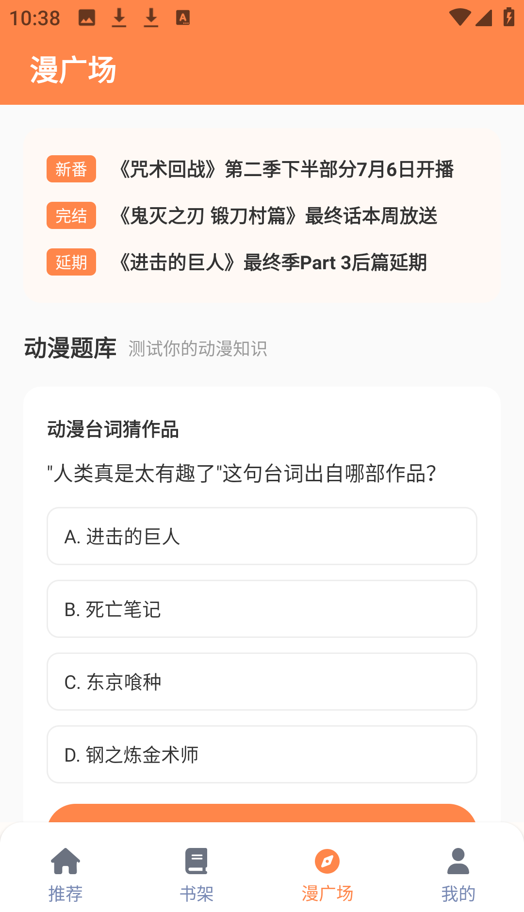 3、趣味互动玩法超有料。包含角色性格测试、作品知识问答、台词猜谜、漫画场景互动等多种玩法,既能测试你的动漫知识储备,也能和同好一起玩梗互动。