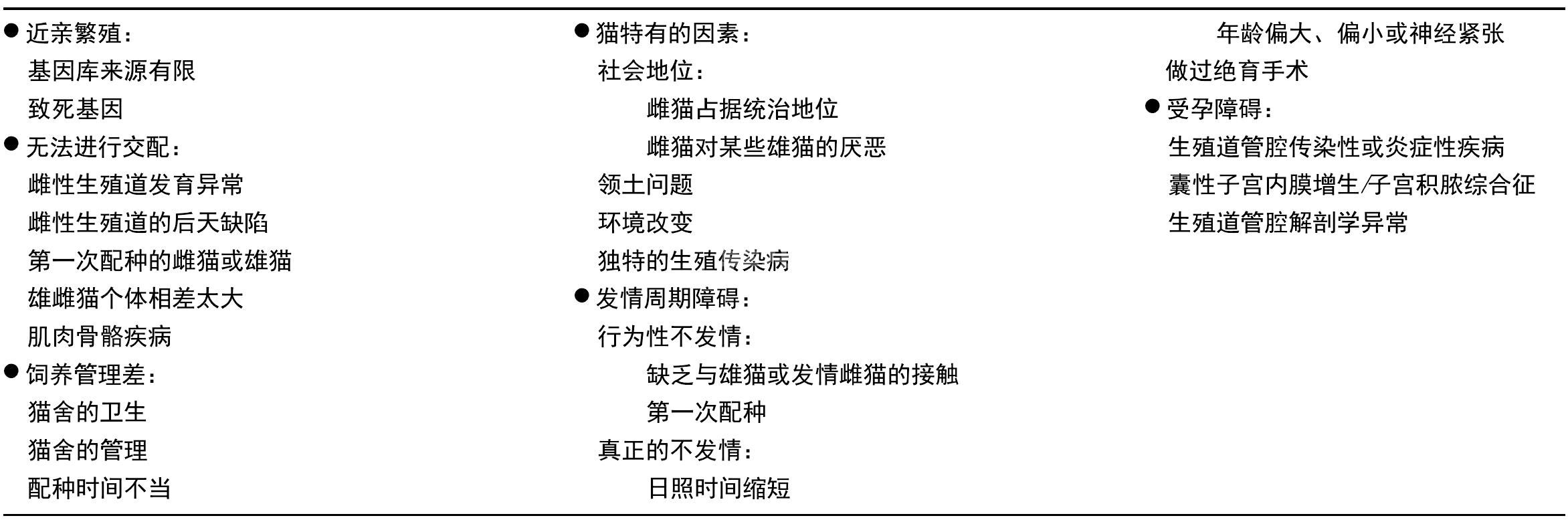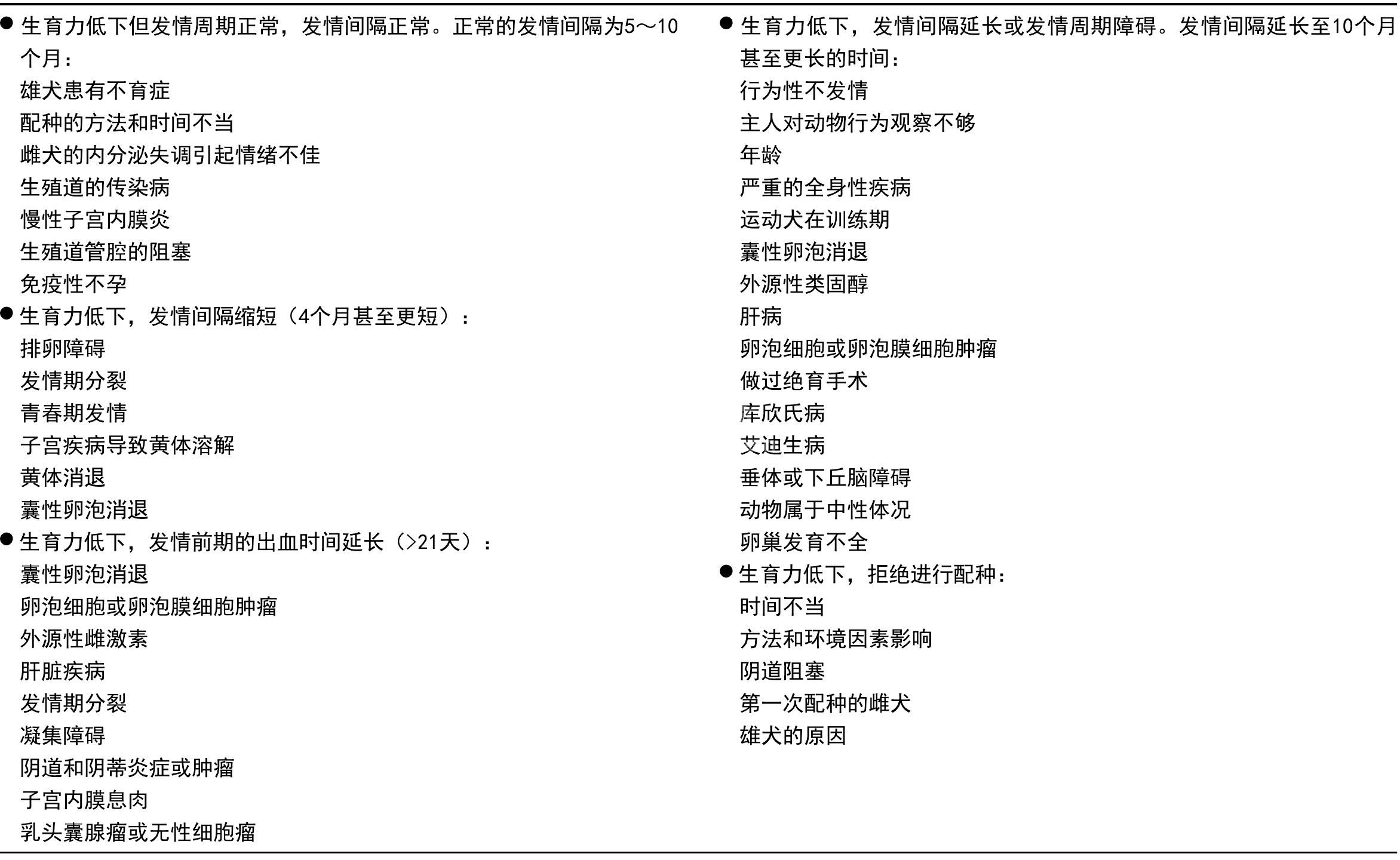 病因学 表5.30和表5.31中列出了引起动物不发情的各种原因。