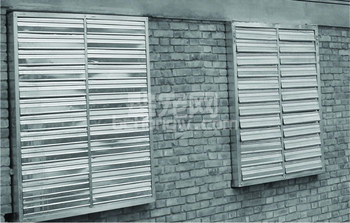 1)风机:在猪舍一端山墙安装2台风机,100头存栏,2台风机分别选直径为80厘米和110厘米;150头存栏,2台风机分别选直径为110厘米和140厘米;200头存栏,2台风机全选直径为140厘米。风机距离地面高1.0米,两风机净距1.2米;并安装舍温定时控制器1个,控制风机的开关时间。风机如图2.3所示。