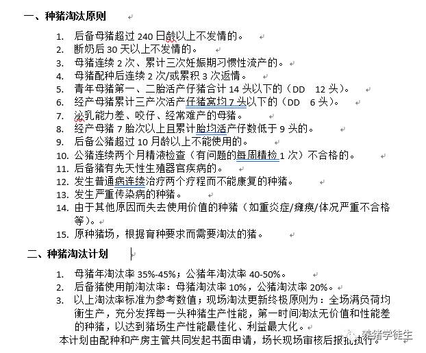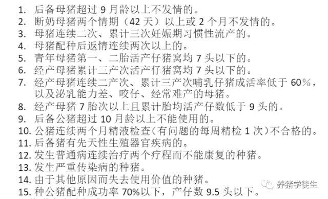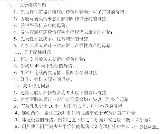 那问题来了,什么是主动淘汰,什么是被动淘汰呢?看下图我随即从网上搜到的很多猪场在使用的淘汰标准。