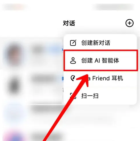 2、在弹出的选项中,点击【创建AI智能体】。