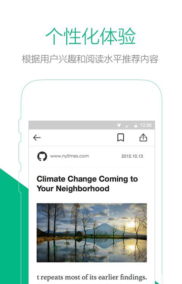 有道e读app是一款专为提高英语水平而设计的阅读软件,它以纯英文的文献内容为核心,致力于为用户提供丰富、地道的英语学习资源。该软件博采众长,汲取了国外媒体和图书的精华,通过大数据技术的个性化推荐,为用户筛选出适合其英语水平和兴趣的文章,使英语学习变得轻松有趣。