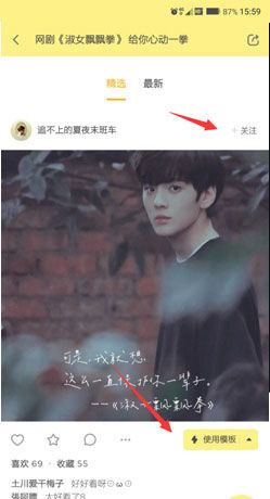 3、然后选择使用模板就可以了。或者你想持续关注这个模板作者,你可以右上角点击关注就可以了。