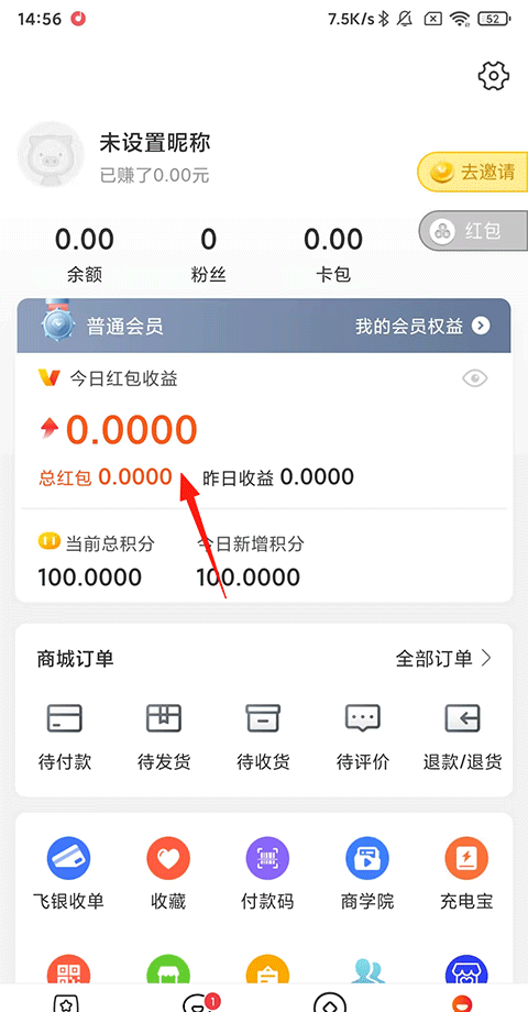 2、点击【今日红包收益】。
