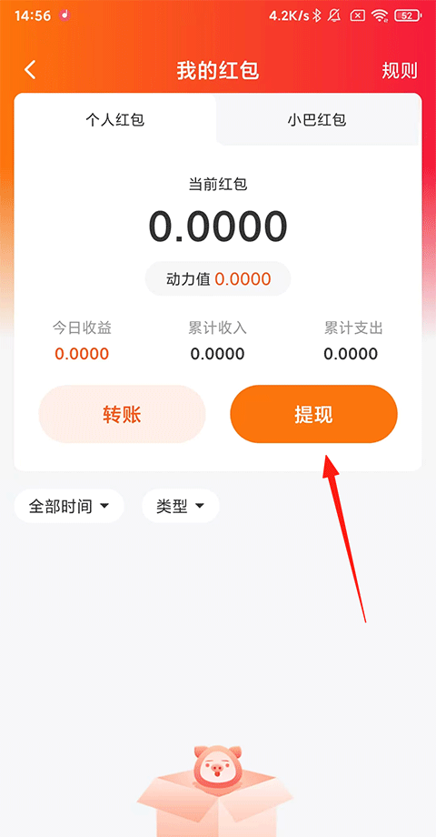 3、进入后点击【提现】即可。